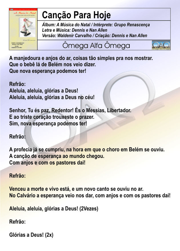 Estamos disponibilizando gradativa e gratuitamente as letras de nossas cantatas e musicais, tanto aqui no OAOshop como também no nosso aplicativo exclusivo, o OAOapp.