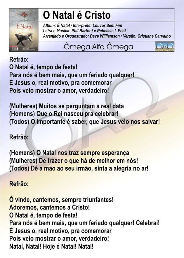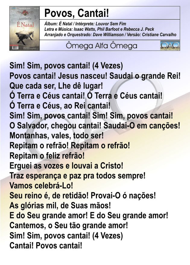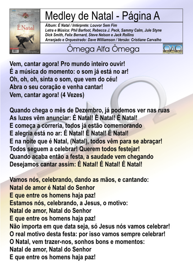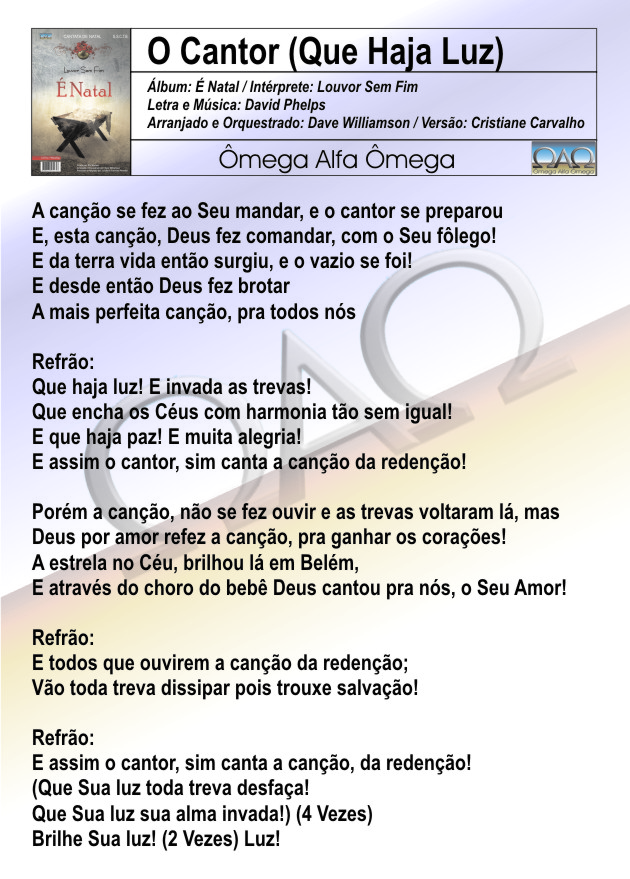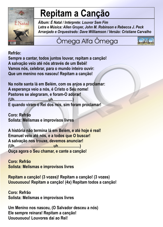Estamos disponibilizando gradativamente, (e gratuitamente), as letras de nossas cantatas e musicais, tanto aqui em nossa loja virtual OAOshop como em nosso aplicativo exclusivo, o OAOapp.
